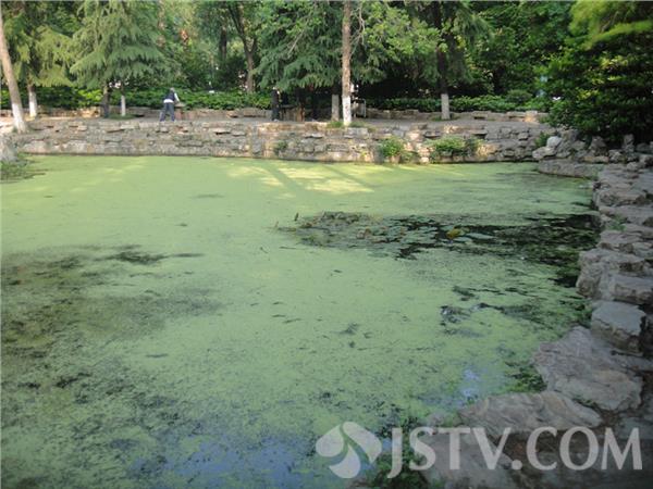 位于北京东路和南京市政府之间的和平公园西园面积虽然不大,但它树木成林,闹中取静,环境十分优雅,是附近居民休闲娱乐的好去处。然而,今天早上笔者发现公园内现在已满目疮痍,面目全非,原先公园内的一弯碧水,上面漂浮着厚厚的浮萍和蓝藻,池水发黑发臭,污秽不堪。