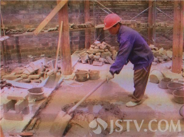 南京秦淮区颜料坊历史文化街区改造项目施工方负责人介绍,要求是全部用这种旧的砖头,现在这种青砖要四块钱一块。现在用这个水泥砖,再用青砖搞上去,这样就看不出来了。全用这个青砖代价太高,水泥砖才两毛钱一块。