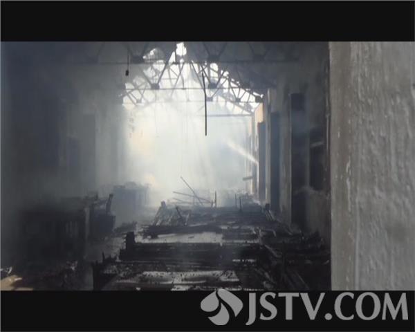 由于仓库年代久远,在水枪冲击下顶部就开始坍塌,不是还发出噼里啪啦的响声。为防止火势复燃,一名队员沿着墙体边缘对火势进行了扑救。最终,经过近30分钟的处置,火势被基本控制,但是整个仓库烧毁严重,过火面积达300平方米。