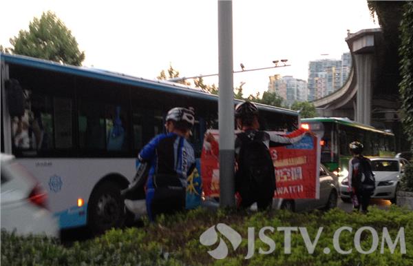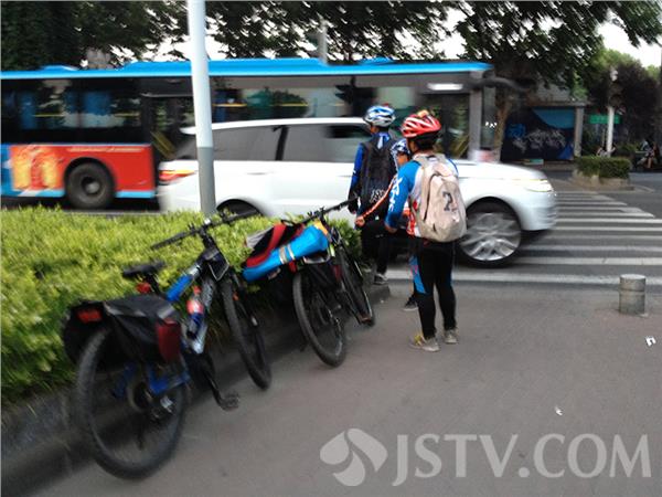 昨天下午2点到6点,在南京鼓楼区虎踞北路与模范西路高架桥下,十字路口,由一群八、九名身着户外服装、骑山地车的“驴友”,装扮成20多岁模样的年青人,手举白纸求助告示,在路口乞讨,“暑假还没到,怎么不上学就出来旅游?”引来不少市民议论纷纷。