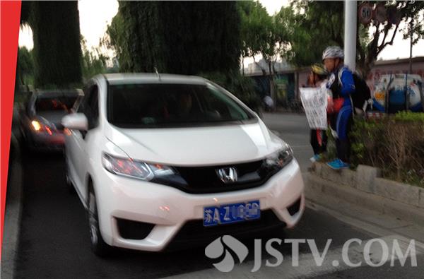 他们在路口,一人举着求助告示:“到此地一游,非常困难,没钱吃饭,肚子很饿,请朋友帮个忙给个饭钱”,遇上红灯时,另外的几个人就分别上前到等待放行的车辆边要钱,“南京老大哥,我们来南京旅游,没钱吃饭,肚子很饿,帮忙给饭钱”。