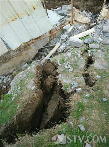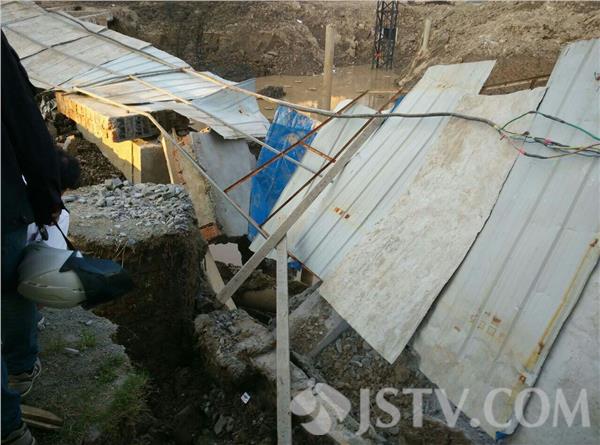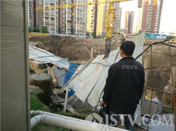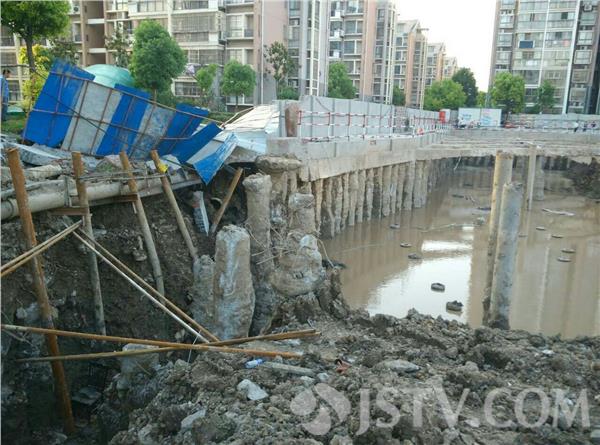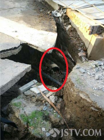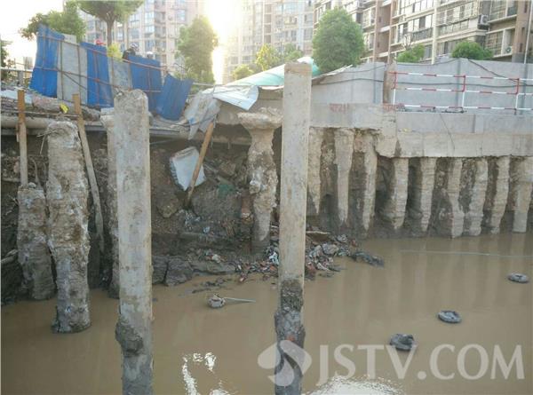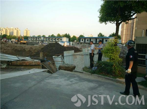 5月21日下午17:50左右,南京浦口江畔明珠广场18栋楼下,有市民报警,称附近有施工塌方。塌方已造成地下一根直径约300毫米的自来水管爆裂,更有一根直径约900毫米的燃气管道也已出现变形,情况危急,报警求助。接警后,民警随即联系消防、自来水公司及燃气公司工作人员紧急赶至现场。