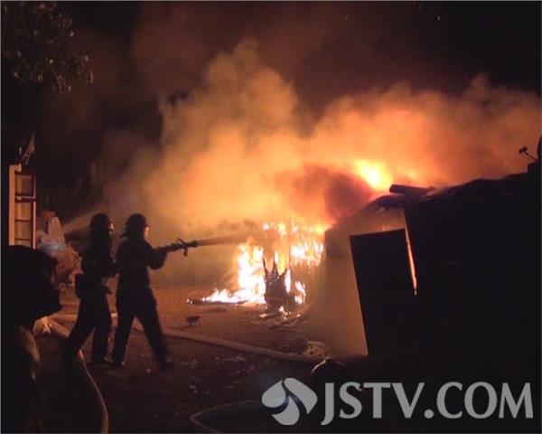 5月26日21时56分,淮安市盱眙县消防中队接到报警称:盱眙县世纪大道有一处平房起火,火势直接威胁着周围多处平房,情况十分危急。接到报警后,盱眙消防立即出动3两水罐消防车,15名指战官兵迅速赶赴现场。