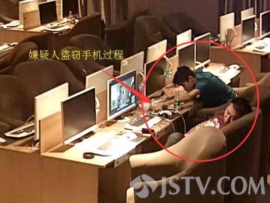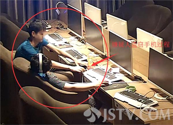 监控显示,在5月22日凌晨4点多钟,在徐州市云龙区汉景大道某网吧内,一名16或17岁的男孩走到一位正在网吧睡觉的受害人傍边坐下,男孩趁受害人熟睡之机,将受害人放在电脑桌上的手机偷走。民警通过监控比对,发现嫌疑人在5月10日的晚上,就曾经在这家网吧盗窃过,而且男孩的衣服都还没有换。