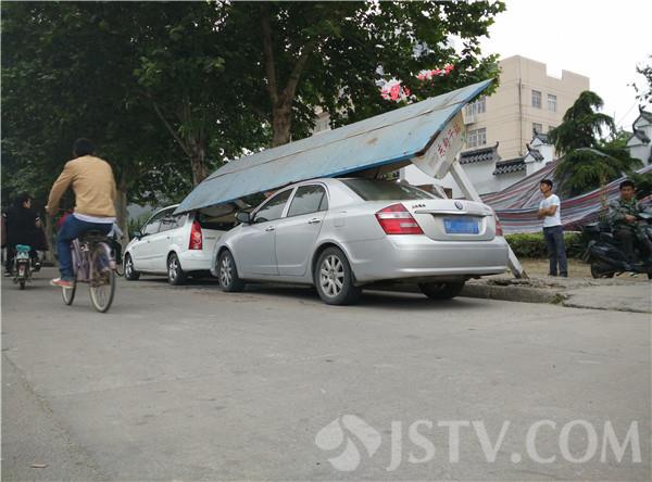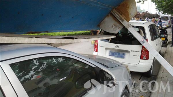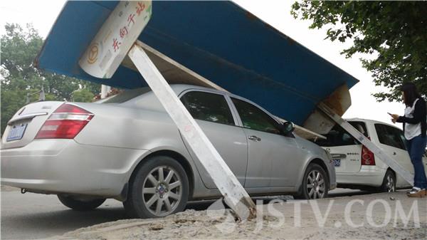 5月28日傍晚5点多钟,有市民向我们反应,在徐州市城东大道东店子附近,有一个公交站台倒塌了,砸到了两辆停放在站台下的轿车。荔枝新闻记者赶到现场,经过了解知道,原来这是一个5年前就废弃的公交站台,站台根部槽钢已经生锈,下午站台下面刚好停放了两辆轿车,一辆运黄沙的货车在倒车的时候,刮到了站台的一角,结果就发生了站台倒塌砸车事件。