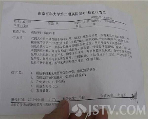 经医院初步诊断,戚某头部左胸第4、第10根肋骨骨折,头部也有明显外伤,受伤较重,现正接受医生治疗。