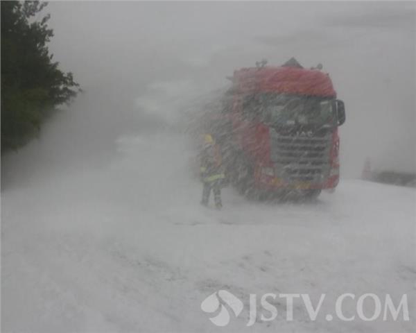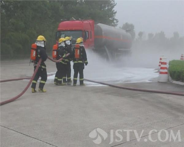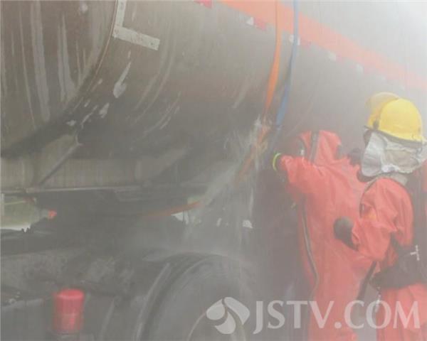 5月29日凌晨4点42分,故黄河服务区有一辆满载31吨氯代叔丁烷的化学危险品槽罐车发生泄漏,徐州消防支队特勤一中队迅速出动三辆泡沫车赶赴现场实施救援。