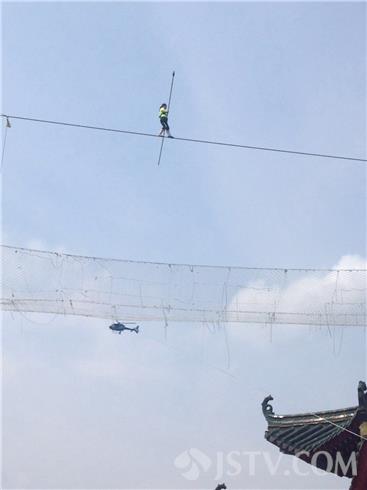 从今天开始,来自中国、瑞士、俄罗斯3个国家的7位高空走钢丝高手,集结湖南省株洲市的攸县酒埠江旅游区,展开史上最强高空走钢丝大对决7位选手比拼的舞台,起点位于酒仙湖下船码头的一个山头之上,终点位于酒仙湖民俗园一个高36米的塔吊之巅,全长870米,钢丝距离水面的最高位置大约为30米,大约十层楼高。钢丝每隔30米有斜拉钢丝进行固定。
