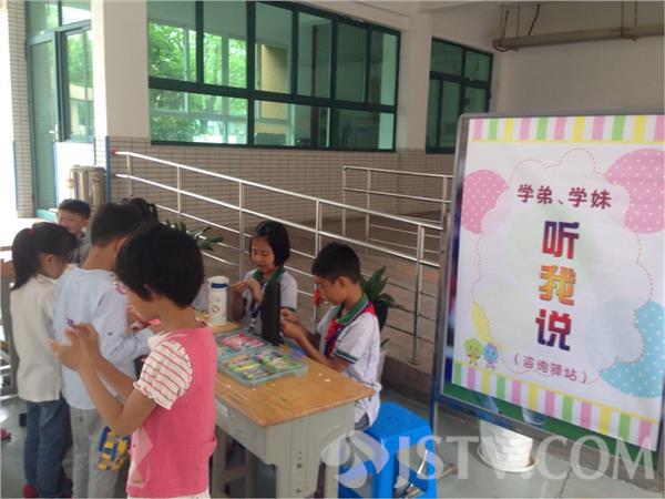 在南师大附中新城小学南校区,专门安排了等候区,方便家长取号后在这里等候报名,另外这边还有一个小朋友很喜欢的区域,叫做“学弟学妹听我说”,二年级的小同学当起了学长,向即将入学的弟弟妹妹介绍学校,传授他们的小窍门。