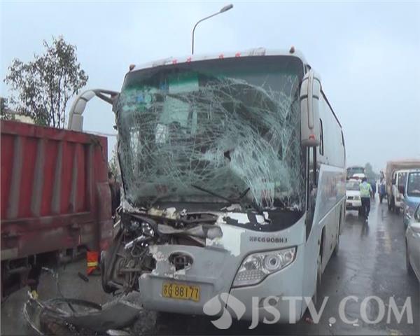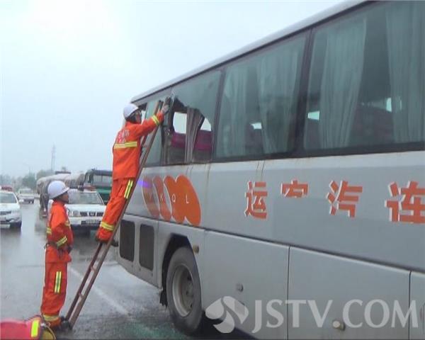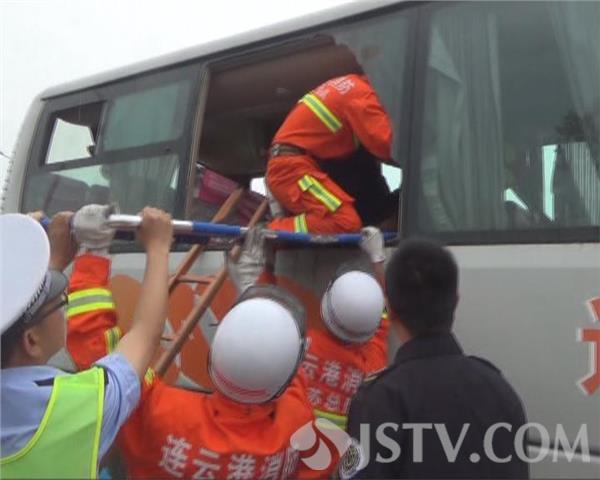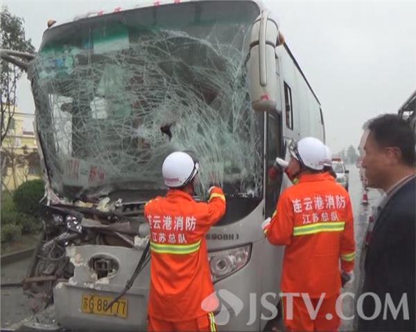 5月29日中午12时许,连云港市海州区204国道,一辆由南往北行驶的客运大巴车在行驶至公路超限检测站附近时,右车头撞上了一辆停在路边的半挂大货车,致大巴车右车头部严重毁损变形,驾驶员被困在驾驶位上动弹不得,后被闻讯赶至的消防官兵解救出来,随后被送往附近的医院救治。