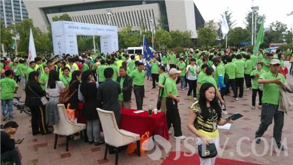 5月30日上午9:30分,淮安市绿地广场前人潮涌动,近2000名矫健的淮安市民正整装待发开启低碳环保千人徒步行活动。