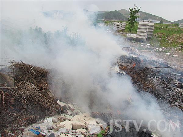 30日下午14点左右,南京长江四桥高速麒麟附近,一拆迁空地成了垃圾焚烧场地,冒出浓烟和刺鼻的气味,影响了环境和周边居民生活。