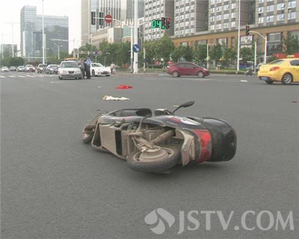 5月30日傍晚5点多钟,在南京江东中路与奥体大街路口,一辆现代轿车和一辆电动车发生碰撞,骑电动车的男子被撞飞,生命垂危。