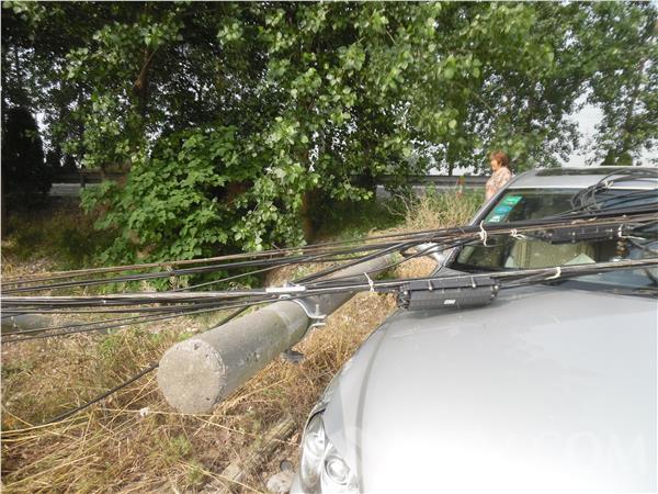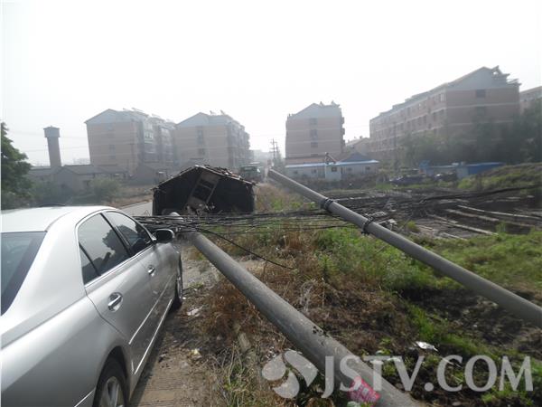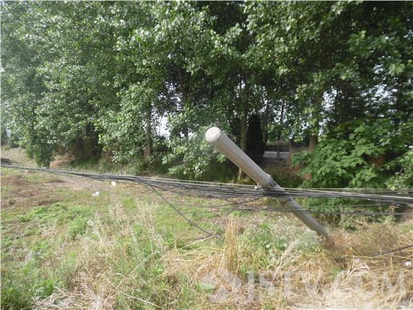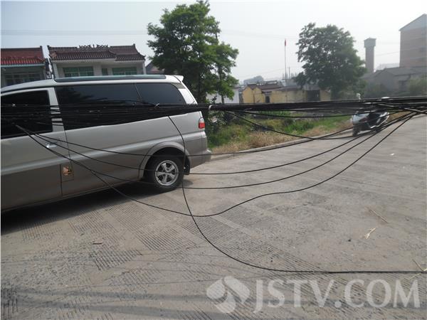 5月31日晚上11时许,在泰州兴化229省道安丰富安花园路口,一辆大卡车在由由西向东行驶的时候,不慎将路口上空的光缆刮断,导致多根光缆水泥柱被拉断,路口的两辆小汽车被严重刮伤,悬在路口的光缆好似天罗地网时刻威胁着过往车辆的安全。