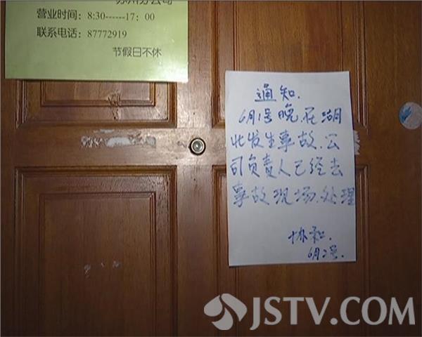 今天(6月2日)上午9点,荔枝新闻记者来到该旅行社位于苏州人民路上的瑞富广场六楼的苏州分公司办公室。从早上九点开始,一直到现在十点一直大门紧锁,门口贴着通知说由于昨晚的事故,目前负责人已经前往现场处理。在门口一个小时的等待中,我们听到办公室里面的电话一直在响,但无人接听,据这栋楼的保安反映,这家公司的工作人员在一大早八点半左右有人过来了,但随后很快就离开了,贴了一张通知,目前也还没有家属过来这边。