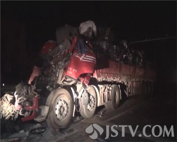 据前面货车的司机介绍,他从镇江开往盐城滨海工地,车上拉的是木板、管子,正好开到这里等红绿灯,刚拉好手刹,不到几秒钟,后面货车就猛地撞上来,速度蛮快,随即他下来报警。 他们怀疑可能是跟后车司机疲劳驾驶,注意力不集中有关。
