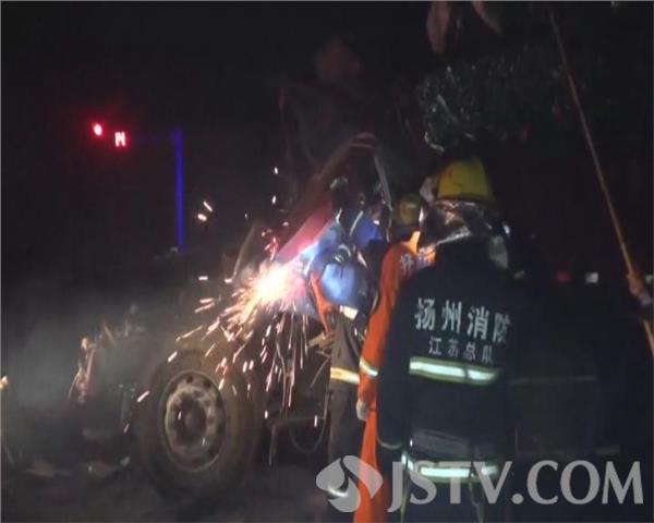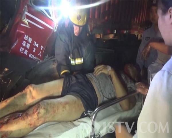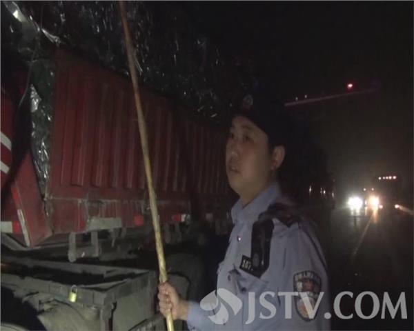6月1日深夜11点50分左右,安大公路扬州高邮市汉留红绿灯地段,发生惊险一幕,两辆大货车追尾相撞,后车司机受伤严重,奄奄一息,危在旦夕,当地交警、消防、派出所、120急救等部门接警,迅速前往救援,成功将受伤司机救出。在整个救援过程中,一位民警始终手持撑吊顶的竹篙一个小时,查看安慰,直至人被救出送医。