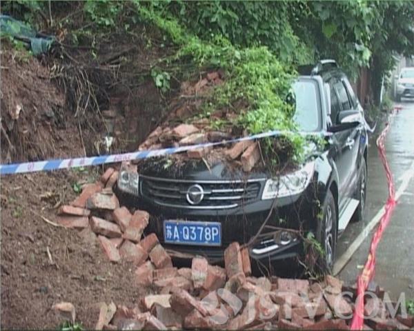 昨天(6月2日)下午两点多,受连续降雨影响,南京安德门大街一处小山坡下的围墙突然发生倒塌,停在墙边的一辆车顿时遭了殃。