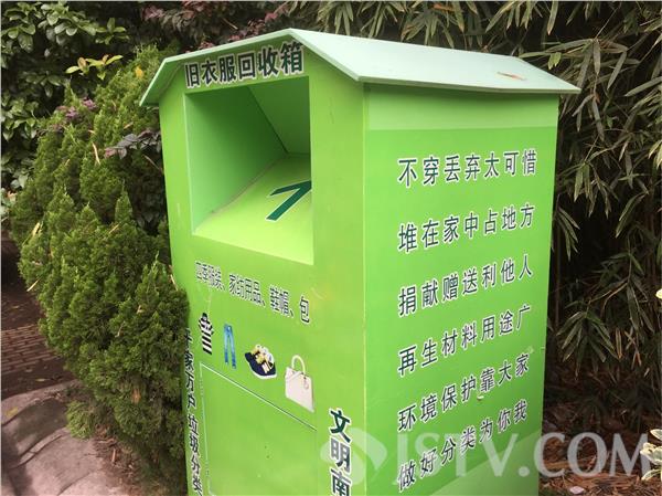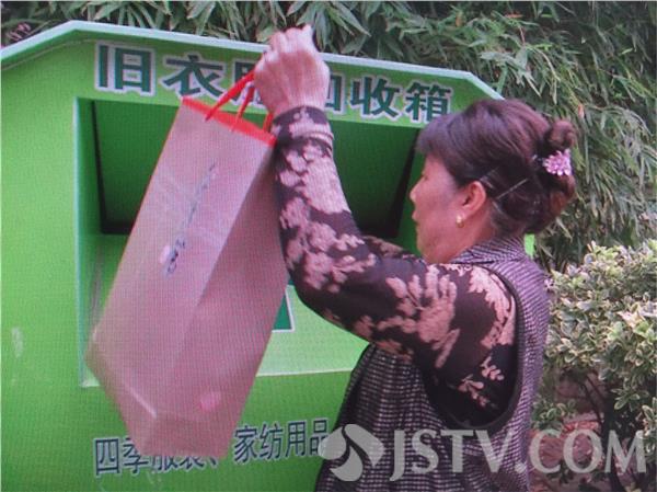 最近在南京的小区出现了旧衣服的绿色回收箱,这让闲置衣物有了新去处。陶阿姨将一些确实不要的衣物整理打包后,拎到了小区大门口送进了回收箱。