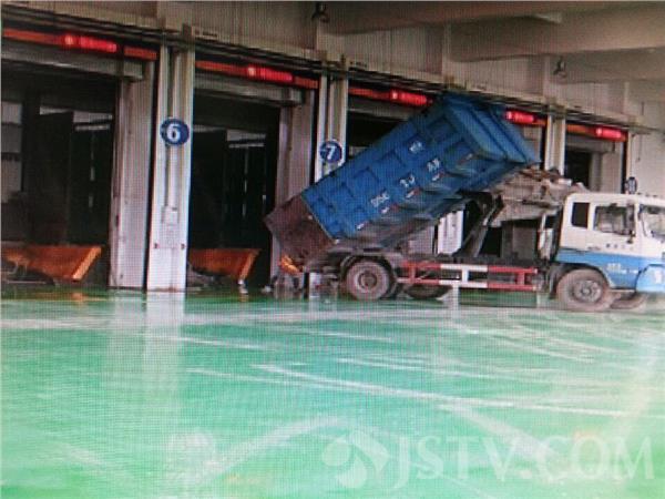 在垃圾压缩的过程中可以看到工人不停的在洒水降尘,而在垃圾运输过程中全程密闭,这个新建成的垃圾中转站一改以往脏乱差的印象,非常的整洁干净。这个转运 站目前的转运量为500吨,未来日处理量最大可以达到1500吨,也是目前江苏省最大的垃圾转运站。它将和发电厂一起,力争解决南京垃圾围城的困境。
