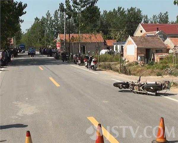 6月5日下午两点多钟,在射阳县四长线公路海河镇大有村十组路口,一部由北向南行驶的SUV汽车,与一部由西向东行驶的摩托车相撞,摩托车被撞飞几十米,摩托车司机当场死亡。
