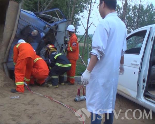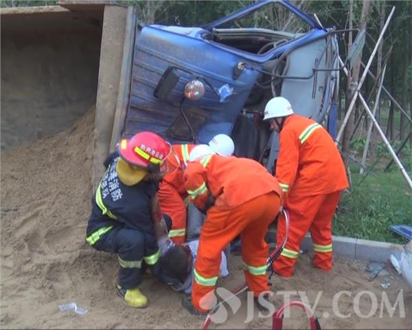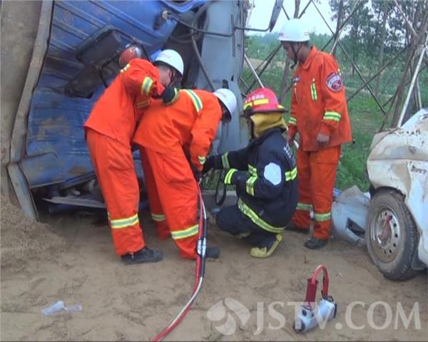 消防官兵到场后发现,一辆装载沙子的货车与一辆白色面包车相撞,两车车头损毁严重,货车发生侧翻,沙子洒落一地,驾驶员受伤严重,被困车内,无法动弹。消防指挥员立即下令,消防队员利用液压扩张器对严重变形的驾驶室进行破拆,经过消防官兵10多分钟的紧张救援,驾驶员获救。后经医护人员确认,驾驶员因伤势较重,已无生命体征。