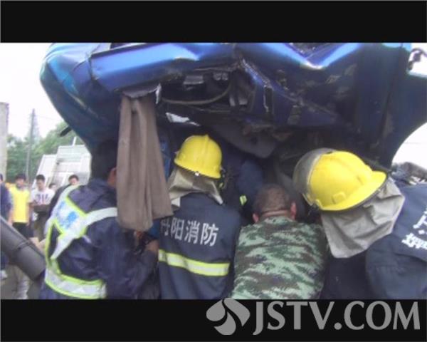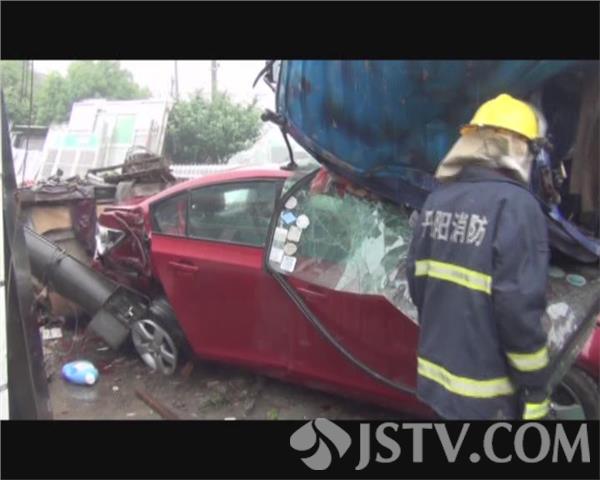 6月10日12时08分,镇江丹阳市皇塘镇中彩印务门前发生三车连环相撞交通事故,导致3人受伤,其中1名司机被困驾驶室,情况十分紧急,等待救援。接到报警后,丹阳导墅中队立即出动2辆消防车、8名消防官兵赶往现场救援。