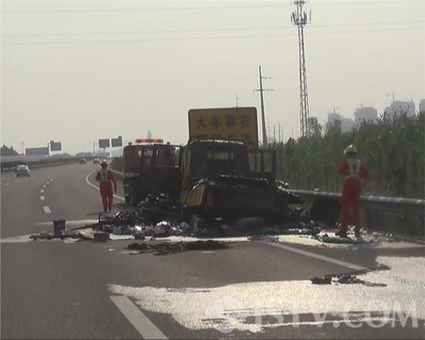 6月13日下午4点左右,沪陕高速公路扬州汤汪收费站附近,一辆装载广告装饰品的货车行驶途中突发意外,车厢冒烟,司机浑然不知,经后方车辆司机提醒,这才靠边停车自救。