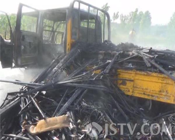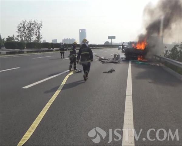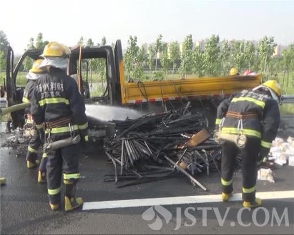 据了解,司机在一家广告公司上班,车上装载了不少防火涂料、油漆、胶水、焊条等物品,从南通分公司运往合肥,途中听到路过司机提醒车上冒烟,赶紧停车查看,可是火势蔓延迅速,没办法只好报警求救。同行的同事试图解开绳索时,掀掉油布,谁知手臂被烫伤。随后,消防队员剿灭残火,全面喷水降温。货车当时买了八万块钱,基本被烧成了“骨架”,车上装载的货物也全部烧毁,损失惨重。货车司机称,货物上当时有一块油布盖着,怀疑火可能是由于绑在车上的绳子与油布摩擦引起的。