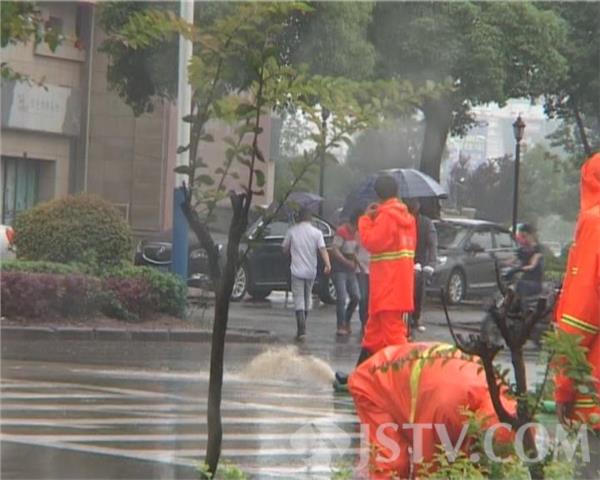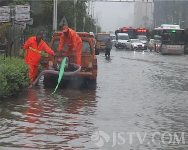 现场发现,因路面积水很深,马路上车辆拥堵厉害。随后赶至的市政工作人员立即展开排水作业,据现场工作人员称,该路段地势较低,加之下水管道排水不畅,路面积水已累计达40公分,他们需加紧强排作业,以保障路面上车辆能正常通行。附近的公交站台由于积水太深,站台已完全被淹没,很多乘客不得不绕道前面很远处上车,确实给市民出行带来了很大的不便,他们现场只能加紧强排,已尽早消除路面上的大量积水。