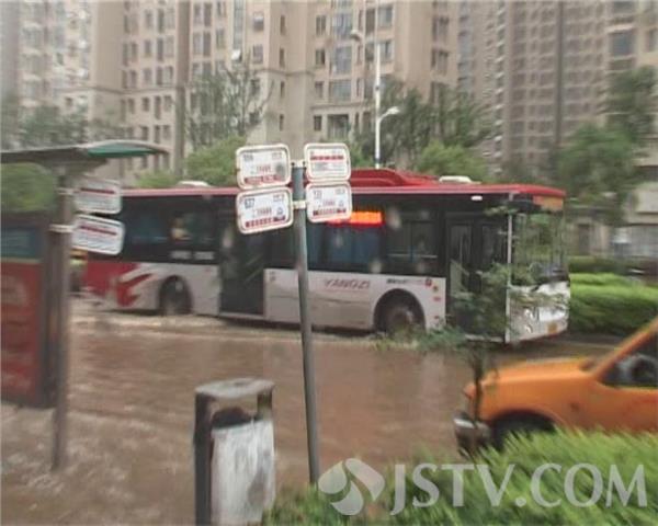 6月17日上午10:10点左右,南京浦口天润城广场,有市民报警,称这里一处公交车站台已完全被淹,给广大乘车市民带来了极大的困难,报警求助,接警后民警在紧急联系市政排水部门后,随后赶往现场。