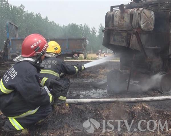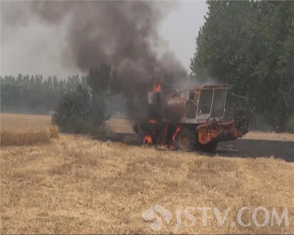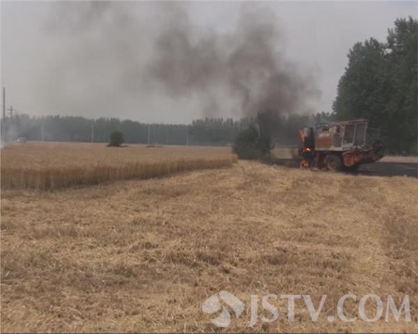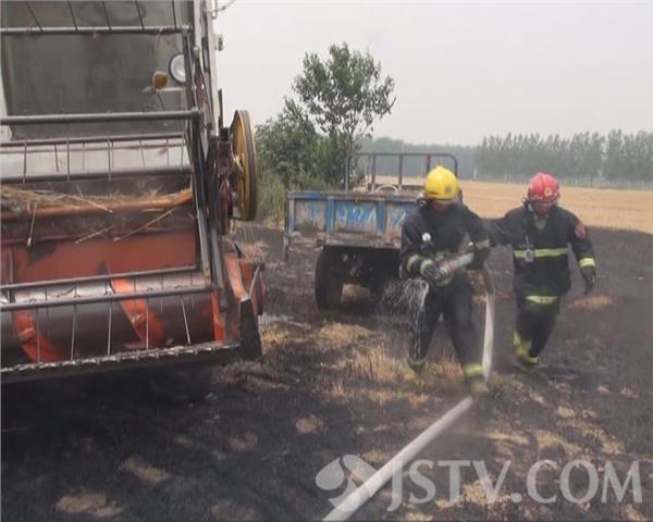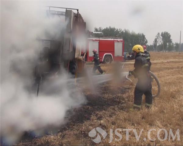 6月16号下午4点,有市民报警说,淮安市涟水县陈师镇一处农田里,一辆正在运作的收割机突然起火,涟水县消防中队迅速赶往现场进行扑救。