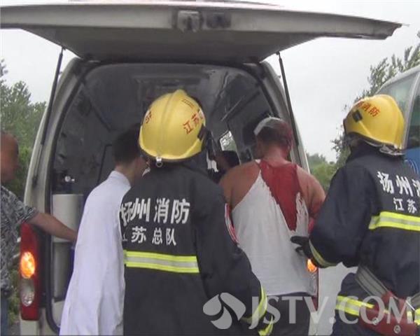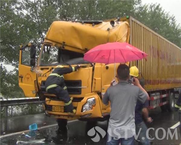 6月17日上午11点左右,京沪高速扬州江都段,一辆快递货车与前方半挂货车追尾,快递车上一家三口被困,其中还有一名三岁大的小孩。天空下大雨,消防队员脱下战斗服,给女孩遮挡保暖,附近居民拿来雨伞给小孩遮雨,直至将人全部救出,上救护车。