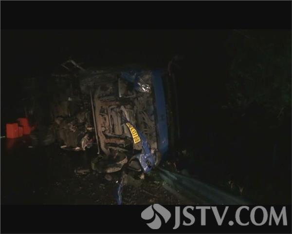 荔枝新闻记者赶到现场时,处理事故的高速交警正在对现场进行勘查,一辆厢式货车头朝南逆向侧翻在由南向北的应急车道里,车头部位是面目全非,路边近二十米左右的护栏因受到撞击而弯曲变形,车厢内装运的塑料周转箱散落一地,北侧不远处,一辆大货车头朝西横停在由南向北的车道里,占据了三股车道,导致该路段通行受阻,大货车的驾驶室严重变形,破碎的零部件散落一地,油箱损坏,空气中散发着一股刺鼻的柴油味道。厢式货车驾驶员告诉记者,他的车子因为故障原因,停在路边的应急车道里,结果就被大货车给撞翻了。大货车驾驶员的告诉记者,厢式货车是骑在白线上停车的,既没有开灯,也没有摆放警示标志,加上下雨天视线不好,等他发现厢式货车时,已经赶不上采取措施了。