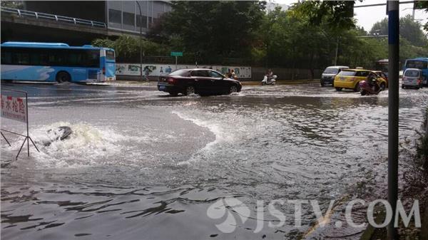 今日(7月2日)下午14:10左右,荔枝新闻者经过南京鼓楼区晓街一岔路口,发现路口中央有两个窨井正哗哗向外喷水,“泉水”奔涌而出,附近数百米的一段路面都已被淹没,过往车辆纷纷折返或让行,附近市民多有抱怨。