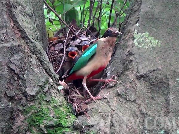 今日上午,天真可爱的三只小仙八,已经开始出窝与鸟妈妈学习飞翔了,并换上八色的羽毛,比起刚出生时,变得更加美丽漂亮动人。