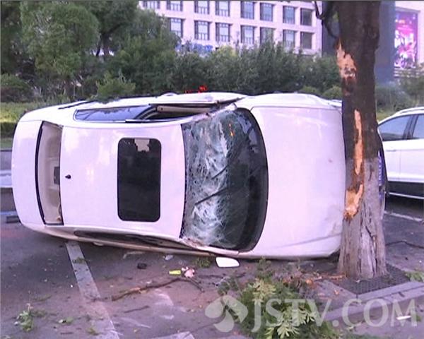 7月12日凌晨4点多钟,在徐州市三环南路,一辆白色轿车由东向西行驶致风华园小区附近时,由于车速过快,车辆一头冲向了对面车道,撞过绿化带后发生侧翻,最终在撞到一颗大树后车辆才停了下来。