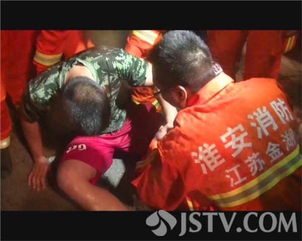 7月11日21时20分许,淮安市金湖县消防中队接到群众报警称金湖县二桥有一男子跳桥,被困在河中,金湖县消防中队立即出动10人到达现场,官兵们发现该男子被困在激流中,死死抱住一棵大树,随时有被激流冲走的危险,经过消防官兵的现场勘查,他们决定用泅渡的方法对男子实施救援,经过游泳训练的战士张奇身系一根安全绳,从桥面慢慢下到湍急的水面,快速泅渡至被困者身旁,利用身上的救援腰带对该男子进行了固定,随后桥上的群众合力将两人吊升至桥面。
