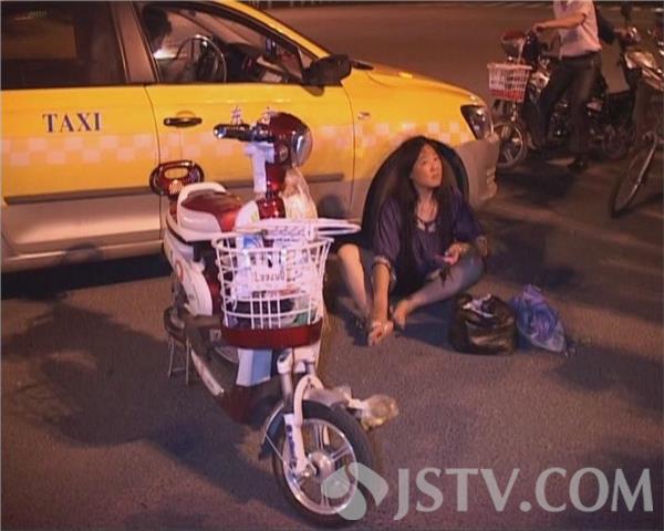 昨天晚上8点,南京西善桥莲池路上,一辆电动车与一辆出租车发生碰撞事故。事故发生理应第一时间救人,但这起事故伤者在现场耽误了一个多小时才得到了救治。事发现场位于莲池路的大路口,一位穿紫衣的电动车骑车女子正瘫坐在地,女子脚底受伤,血流不止。她说傍晚自己买完菜骑车回家,一时心急骑快了,发生了意外。