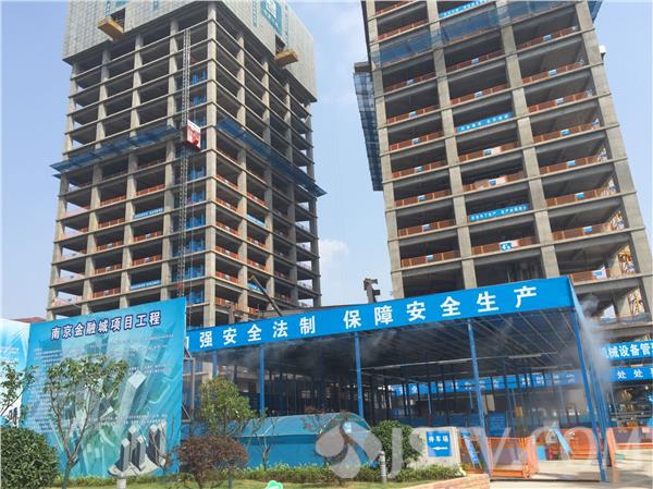 今天下午2点半,记者来到位于南京河西的金融城项目工地。此时,地表温度超过了35度, 但是在施工区,记者发现,沿着楼层间的平台外侧,不停的向外喷着水雾。施工单位的负责人说, 这是今年刚启用的降温降尘措施。既能实现扬尘管控,也能将现场的温度,有效降低。为了防止工人中暑,记者发现,在工地安全通道的出入口,都准备了大桶的凉茶,工人们配发了防暑药品。