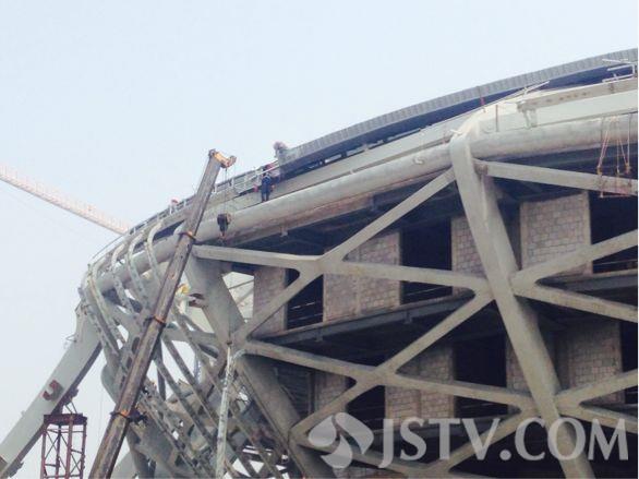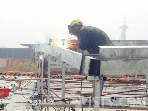 江苏教育频道《青年江苏》推出特别报道“高温下的坚守”,跟随我们的记者,一起去探访江苏大剧院施工现场的劳动者。 江苏大剧院位于南京河西新城,紧邻奥体中心和金陵图书馆,江苏大剧院音乐厅、戏剧厅、综艺厅土建和外罩钢结构主体都已经完工,目前工地上每天有1000多名工人,正在进行外罩钢结构和玻璃幕墙的安装。在项目指挥部负责人的带领下,记者爬上了12米高的平台,这里每天有上百名工人,他们主要负责音乐厅外墙建筑结构的焊接和安装。当天南京的最高气温达到了35度,在这样的温度下,即便站着一动不动,也出了一身汗,工人们在这样的条件下施工,可以说是挥汗如雨。更多详细内容请关注江苏教育频道《青年江苏》。