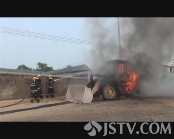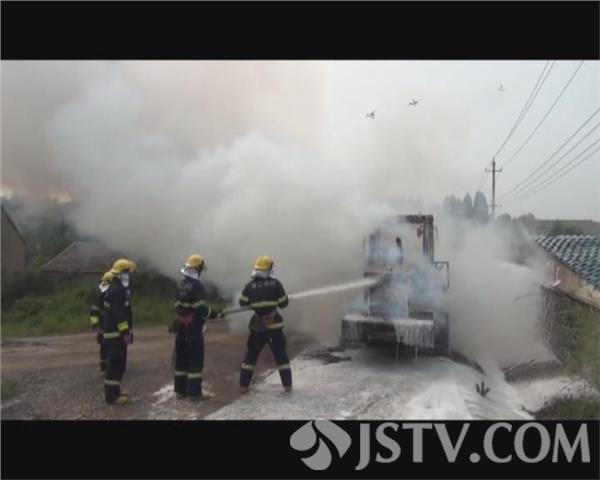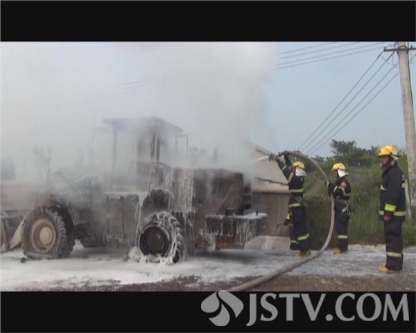 7月14日14时33分,镇江市丹徒区上党镇小力山煤矿附近一辆推土机着火,然而车主不会使用灭火器,只能眼睁睁看着大火,将整个车辆吞没。消防官兵赶到后经过20多分钟扑救将大火扑灭。