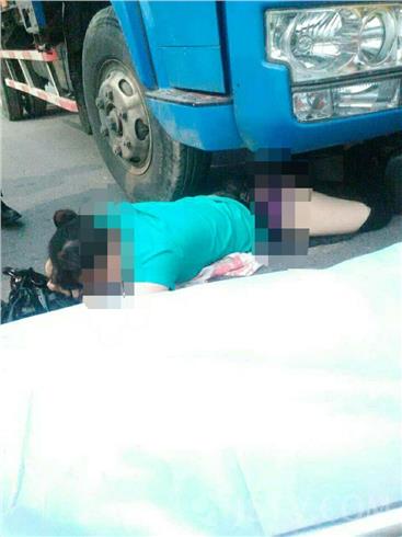 笔者现场看到被撞女子倒在卡车右轮下,腰部紧挨车轮,如果卡车再前进一步悲剧就要发生,随后女子被送往医院,据了解当时女子骑电瓶车由东向西逆向行驶到这里时与由南向西左转弯的卡车相撞,卡车驾驶员突然看不到女电瓶车紧急刹车,下车一看前右轮已经紧贴女子腰部位了,万幸刹车及时避免了悲剧发生,目前电瓶车女子经过检查并无大碍,交警部门已经介入调查。