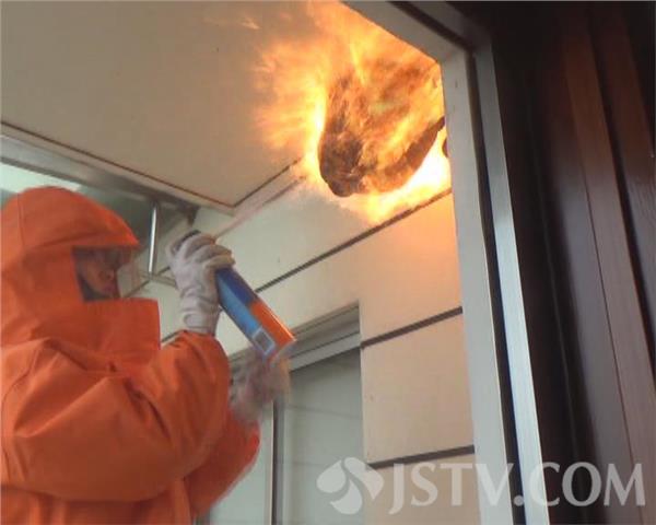 在老人家中,可以看到,这只马蜂窝就靠近阳台门,蜂窝上爬满了密密麻麻的马蜂。马蜂个头比较大,到处飞舞。如不及时摘除,这些马蜂可会伤人,特别是暑期孩子在家多,蛰到后果不堪设想。见此情景,消防队员立即穿上防蜂服,利用打火机点燃杀虫剂,火烧马蜂窝。