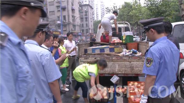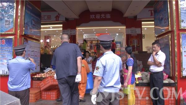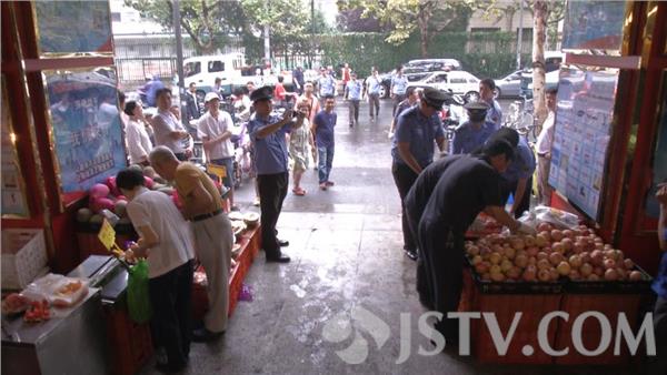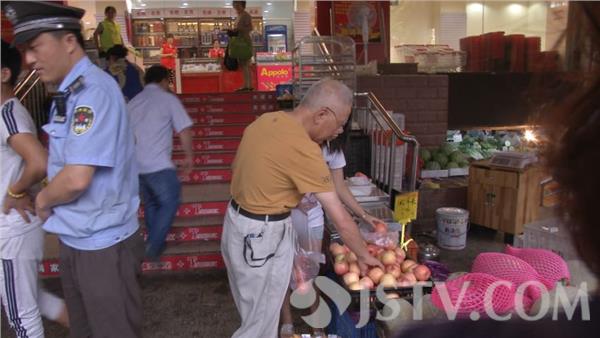 今天上午,记者跟随南京市鼓楼区湖南路街道城管中队的执法人员,来到了市民举报的平安里福鸿惠品超市。现场记者看到,原本进入超市的公共通道,被各种水果篮占据,俨然一个小卖场,进出超市的通道宽度也因此被压缩了一半。这种现象已经影响到居民出行安全,消防安全,万一里面有什么事,后果不堪设想。但是,面对城管队员的执法,摊主并不配合。按照规定,城管执法人员必须对违规销售的部分水果进行暂扣。但摊主觉得水果被暂扣就等同于损失。一来二去,双方就水果的重量较起了真,于是,城管执法人员挨个将苹果数量进行了清点。同时,还找来了称,将暂扣的水果称重。现场确定133.85公斤。 双方确认了重量后,执法人员对违规摊主开具了证据先行保存登记单,并要求摊主尽快前往城管中队接受处罚,方可领回被扣的水果。