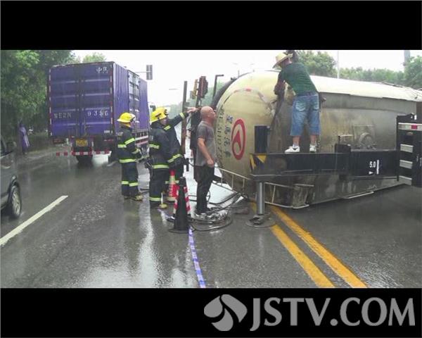 经询问槽罐车司机得知,当时轿车与槽罐车是同相行驶的,轿车在槽罐车右侧突然左转弯,槽罐车避让不及撞上轿车发生侧翻。