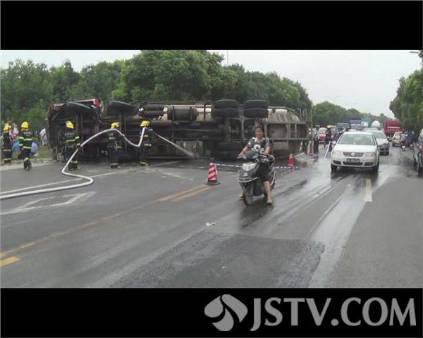 中队消防官兵到达现场后,发现一辆装有100多吨散装水泥的槽罐车和一辆轿车相撞,槽罐车发生侧翻,轿车被压严重变形,司机与乘客已被现场群众救出,所幸未受重伤,且槽罐车邮箱发生泄漏,如不及时处置,后果不堪设想。经过全体消防官兵与现场群众的一番努力下,两名被困人员被及时送往医院进行治疗。