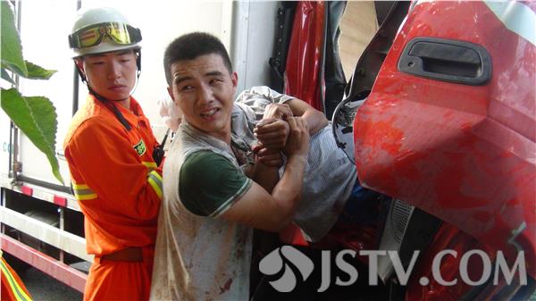 今天(7月23日)凌晨5点半左右,在沪宁高速上海往南京方向257公里处,一对父子驾车在行驶途中,因儿子疲劳驾驶打了个“盹”,没想到却一头追尾撞上了前方的一辆大货车,父亲被卡在副驾驶室里受伤严重,接警后,句容消防救援人员立即赶到现场进行救援。