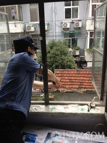 听说有蛇,四楼的住户也吓了一跳。接到报警后,民警赶到现场,为了防止大蛇伤人,民警在保安的配合下,找来竹竿把蛇挑了下来。