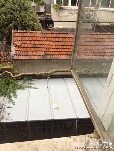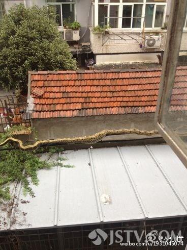 今天(7月25日)一早八点多,家住南京市厚载巷38号的林女士在家休息时,突然发现窗口的电线杆上有一条将近两米长的蛇。这可吓坏了林女士,她赶紧找来邻居并拨打了110报警电话。